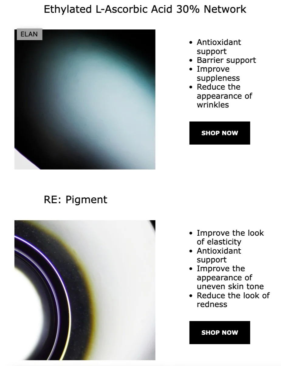 i was hired by DECIEM as a freelance copywriter while they were in the midst of re-branding the voice and digital presence for the brand, NIOD (non-invasive options). i worked closely with the brand leadership team to execute their vision and guidelines for the new and improved voice through product-focused email marketing that combined elements of brand storytelling and science education.